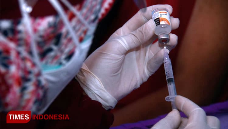 TIMES Purwakarta/Salah satu tenaga kesehatan saat mengisi dosis vaksin untuk disuntikkan. (FOTO: Adhitya Hendra/TIMES Indonesia)