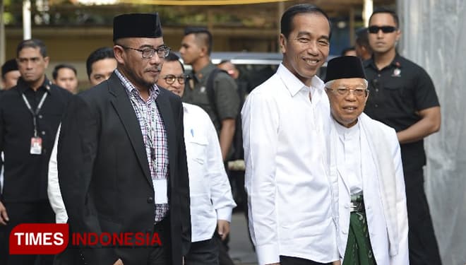 TIMES Purwakarta/Presiden terpilih, Jokowi, saat tiba di Gedung KPU RI, Minggu (30/06/2019). (FOTO: Hasbullah/TIMES Indonesia).